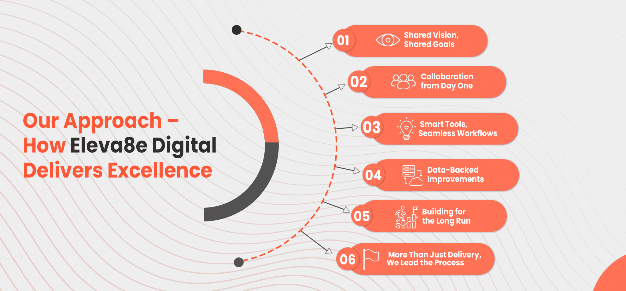 At Eleva8e Digital, we don’t just build websites — we build quality into everything we do. Our approach brings teams together, simplifies collaboration, and focuses on long-term results. Here’s how we make that happen: